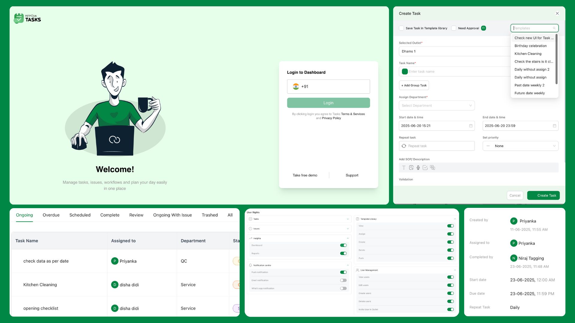 - Task Creation - Is now simplified, and templates can be assigned from the same window